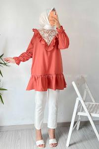 Modalamelif Önü Fırfır Detaylı Dantel Modelli Tunik Gül