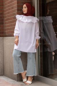 Modalamelif Önü Fırfır Detaylı Kol Lastikli Tunik Beyaz