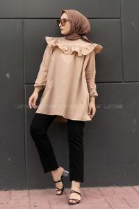 Lamelif Manşeti Biyeli Tunik Krem