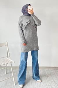 Modalamelif Önü Fırfır Detaylı Yumoş Triko Tunik Gri