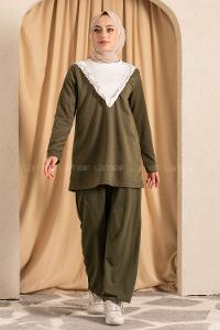 Lamelif Balance Armalı Çımalı İkili Tesettür Takım Haki