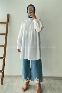 Lamelif Manşeti Biyeli Tunik Beyaz