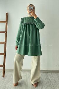Modalamelif Önü Fırfırlı Gömlek Pastel Yeşili