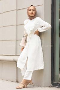 Modalamelif Önü Fırfırlı İkili Takım Beyaz