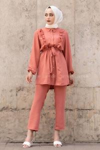 Modalamelif Önü Fırfırlı İkili Takım Gül Kurusu