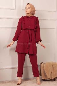 Lamelif Balance Armalı Çımalı İkili Tesettür Takım Bordo