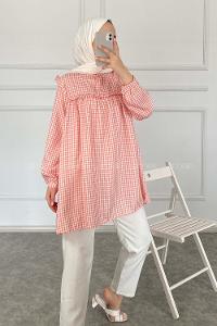 Modalamelif Önü Fırfırlı Pötikare Tunik Gül
