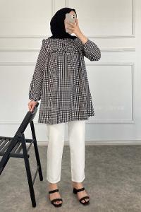 Modalamelif Önü Fırfırlı Pötikare Tunik Siyah
