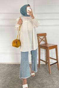 Modalamelif Önü Fırfırlı Tunik Ekru