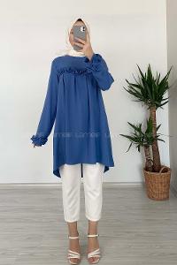 Modalamelif Önü Fırfırlı Tunik İndigo