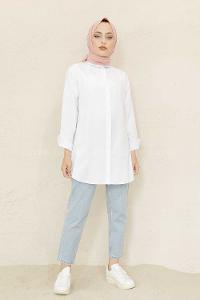 Lamelif Gizli Düğme Detaylı Tesettür Tunik Beyaz
