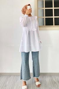 Lamelif Flores Fırfırlı Tunik Beyaz