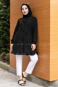 Lamelif Kol Tünel İp Detaylı Gömlek Siyah