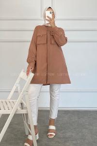 Lamelif Manşeti Biyeli Tunik Acı Kahve