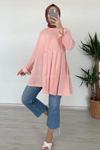 Modalamelif Önü Gizli Düğmeli Pileli Tunik Pudra