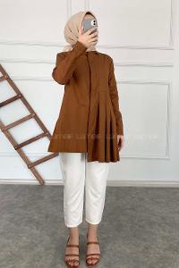 Modalamelif Önü Gizli Düğmeli Pileli Tunik Taba