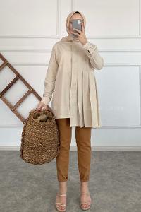 Modalamelif Önü Gizli Düğmeli Pileli Tunik Taş