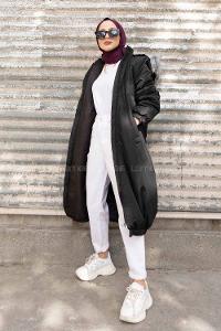 Modalamelif Önü Gizli Fermuarlı Kapşonlu Mont Siyah