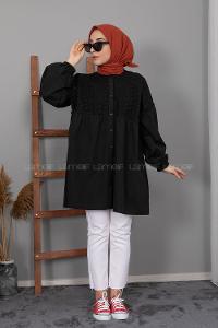 Modalamelif Önü Güpürlü Gömlek Siyah
