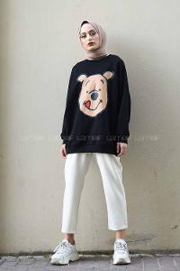 Modalamelif Önü Karikatür Baskılı Sweatshirt Siyah