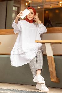 Modalamelif Önü Katlı Salaş Tunik Beyaz