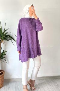 Modalamelif Önü Kısa Arkası Uzun Çiçek Motifli Jakarlı Gömlek Eflatun