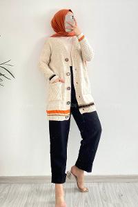 Lamelif Uzun Tesettür Hırka Bej
