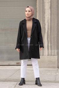 Modalamelif Önü Tek Düğmeli Kaşe Kaban Siyah