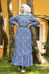 Lamelif Bel Büzgülü Tesettür Elbise Lacivert