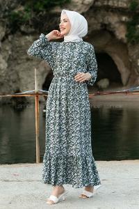 Lamelif Taş Detaylı Tesettür Elbise Haki