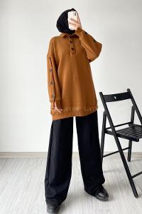 rım Düğmeli Kol Düğme Detaylı Sweat Kahverengi