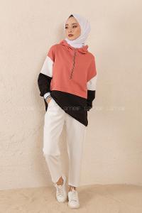 kapüşon yaka, önü yarım fermuar detaylı tarz sweat
