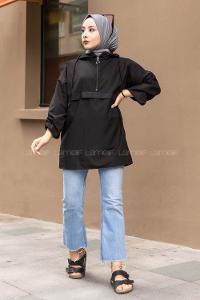 Modalamelif Önü Yarım Fermuarlı Kapüşon Detaylı Tunik Siyah