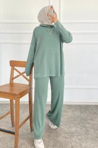 Modalamelif Önü Yarım Fermuarlu Kazak Pantolon İkili Takım Çağla Yeşili