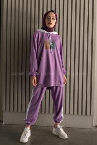 Modalamelif Önü Yazı Baskılı Garnili İkili Takım Lila