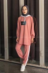 Lamelif Balance Armalı Çımalı İkili Tesettür Takım Acı Kahve