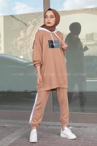 Lamelif Lively İkili Triko Tesettür Takım Sütlü Kahve