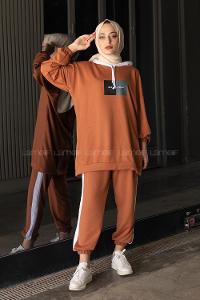 Lamelif Düz İkili Triko Tesettür Takım Acı Kahve