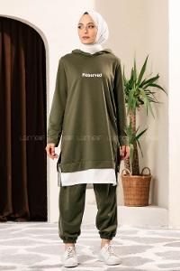 Modalamelif Önü Yazı Baskılı Kapüşonlu İkili Takım Haki