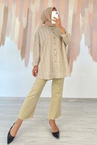 Lamelif Kol Tünel İp Detaylı Gömlek Bej
