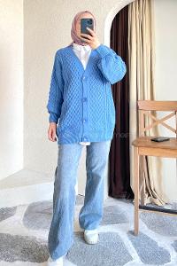 Modalamelif Örgü Desen Ön Düğmeli Hırka Mavi