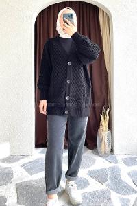 Modalamelif Örgü Desen Ön Düğmeli Hırka Siyah