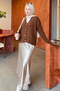 Lamelif Örgü Detaylı Hırka Acı Kahve