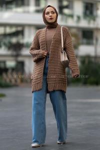 Modalamelif Örgü Detaylı Triko Hırka Sütlükahve