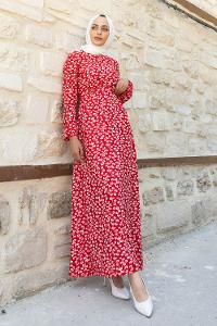 Modalamelif Orkide Desen Efil Elbise Kırmızı