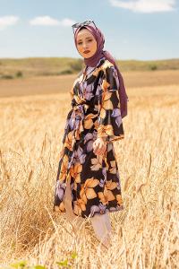 Modalamelif Orkide Desen Kuşaklı Kimono Siyah