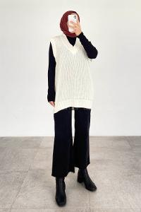 Modalamelif Ovarsize V Yaka Süveter Ekru