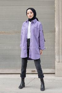 Modalamelif Oversize Cepli Kot Ceket Lila