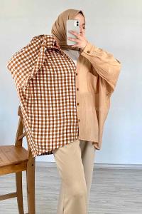 Modalamelif Oversize Ekose Gömlek Sütlü Kahve