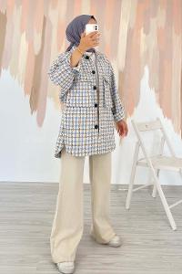 Modalamelif Oversize Körük Çift Cepli Kare Desenli Ceket Açık Mavi